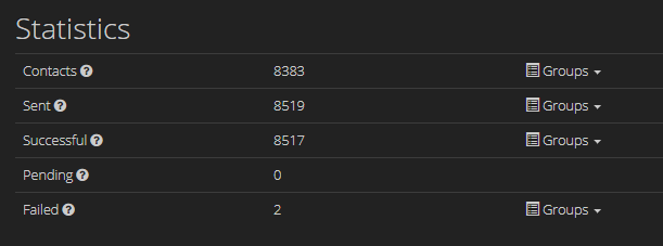 If you want to know who among your contacts are yet to receive your engagement (pending), who already received it (successful), and who were not successfully sent (failed), then this is where the groups dropdown in the reports page will come in handy. From the dropdown, you can add the contacts with a particular status (e.g., Failed) to a group and then view that group from the contacts page.