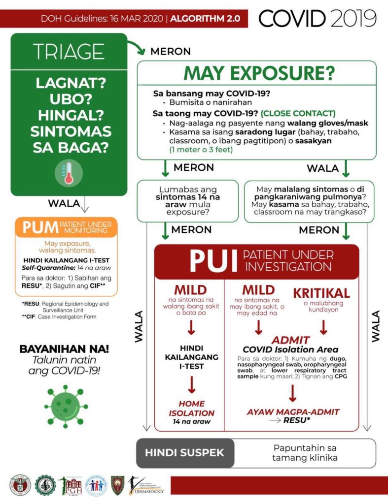 The Philippines’ Department of Health published an algorithm to help guide citizens in determining whether they should go to medical facilities to get checked for COVID-19. (Image: © DOH PH)