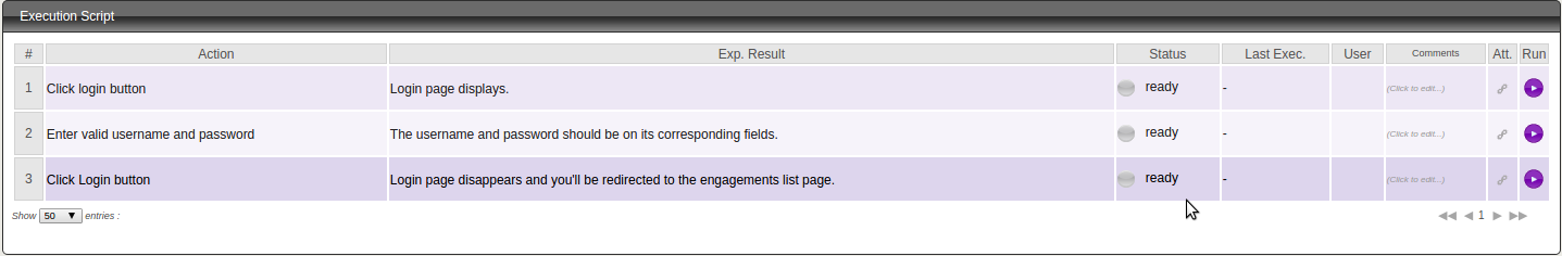 10. From the image above, you can now click the Run icon each step and select the status based on the result