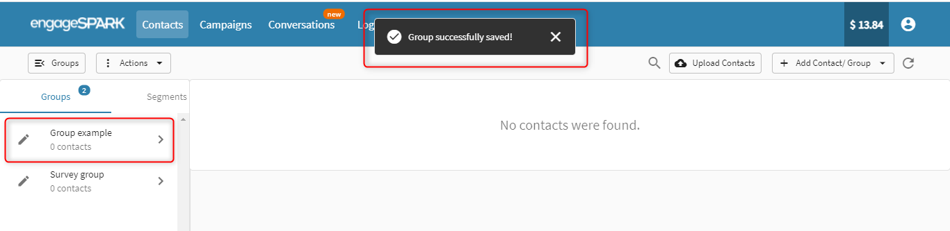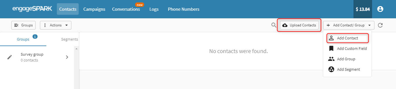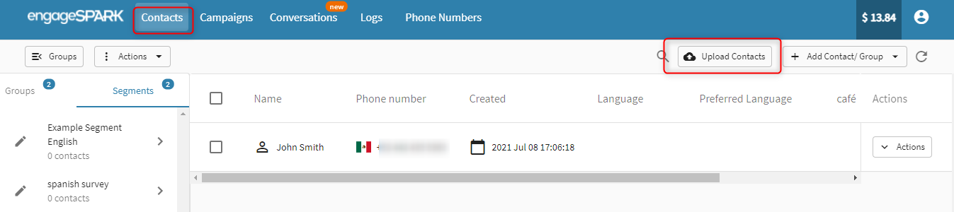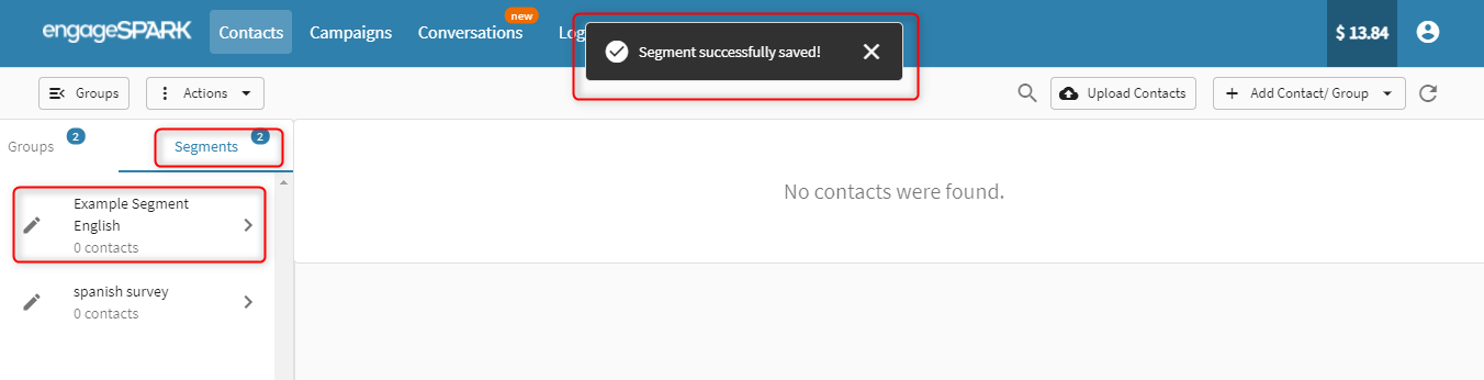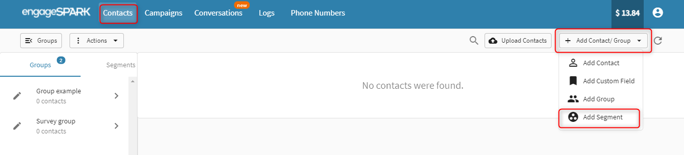 Note: You can choose to create your Segments before or after uploading your contacts to the engageSPARK platform.