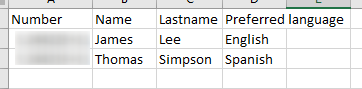 Step 3: When uploading your contacts make sure you have filled in the field that you used in your conditioning. In this example you see that one contact has their language set to English and the other to Spanish. By the end of this only the contact with English should be in our English Segment.