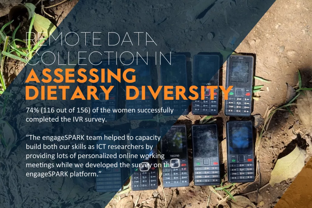 - Project Goal: The Natural Resources Institute of the University of Greenwich aimed to compare traditional face-to-face diet data collection methods with Interactive Voice Response (IVR) survey calls to assess the reliability and effectiveness of remote data collection in determining dietary quality with hard-to-reach women and children in Sub-Saharan Africa.