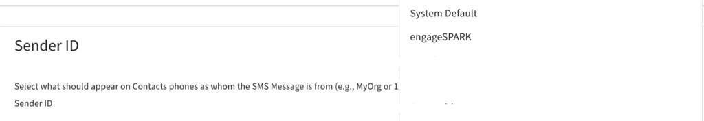 - By default, the engageSPARK Sender ID will be used. Only registered Sender IDs of your organization will work with SMS campaigns.