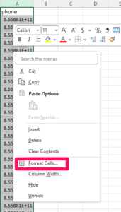 - Highlight the column with the phone numbers.