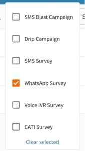3. To filter by type, click on the icon; from the dropdown, choose the kind of campaign you want to be displayed.