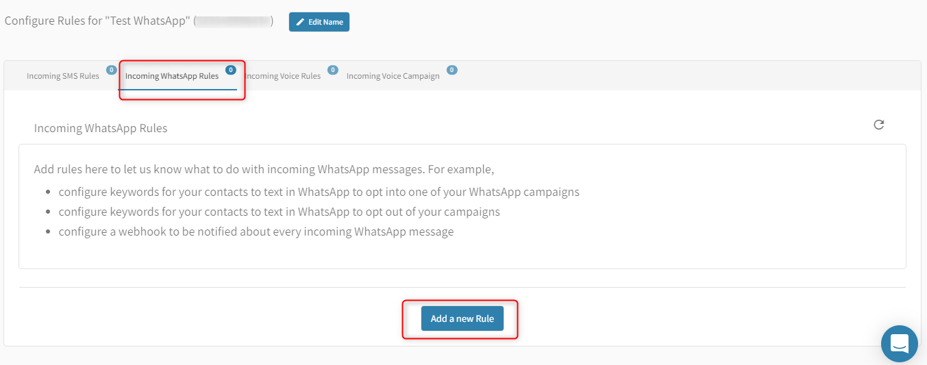 2. Then in the Incoming WhatsApp tab, click the button that says Add New Rule.