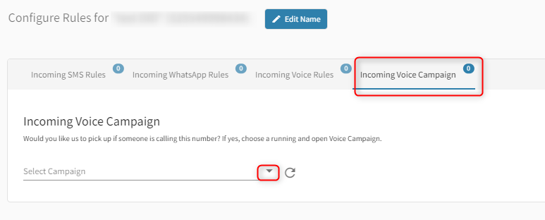 2. Select Incoming Voice Campaign tab and select the voice campaign you want to link from the dropdown.