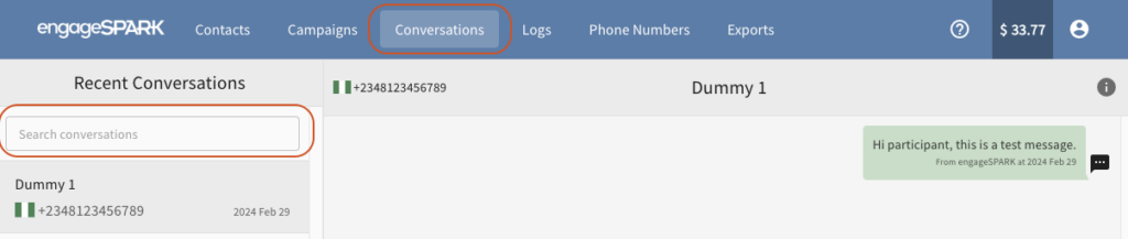 You can find a summary of the messages you sent under the Conversations tab. The messages can be filtered by using the Search Conversations field to search for messages from a particular contact.