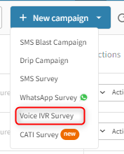 2. Then select Voice IVR Survey from the dropdown menu found in the New Campaign button