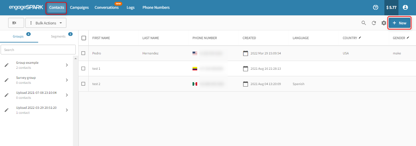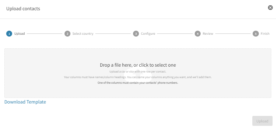 Uploading contact phone numbers using an excel file (.xlsx) or a CSV file